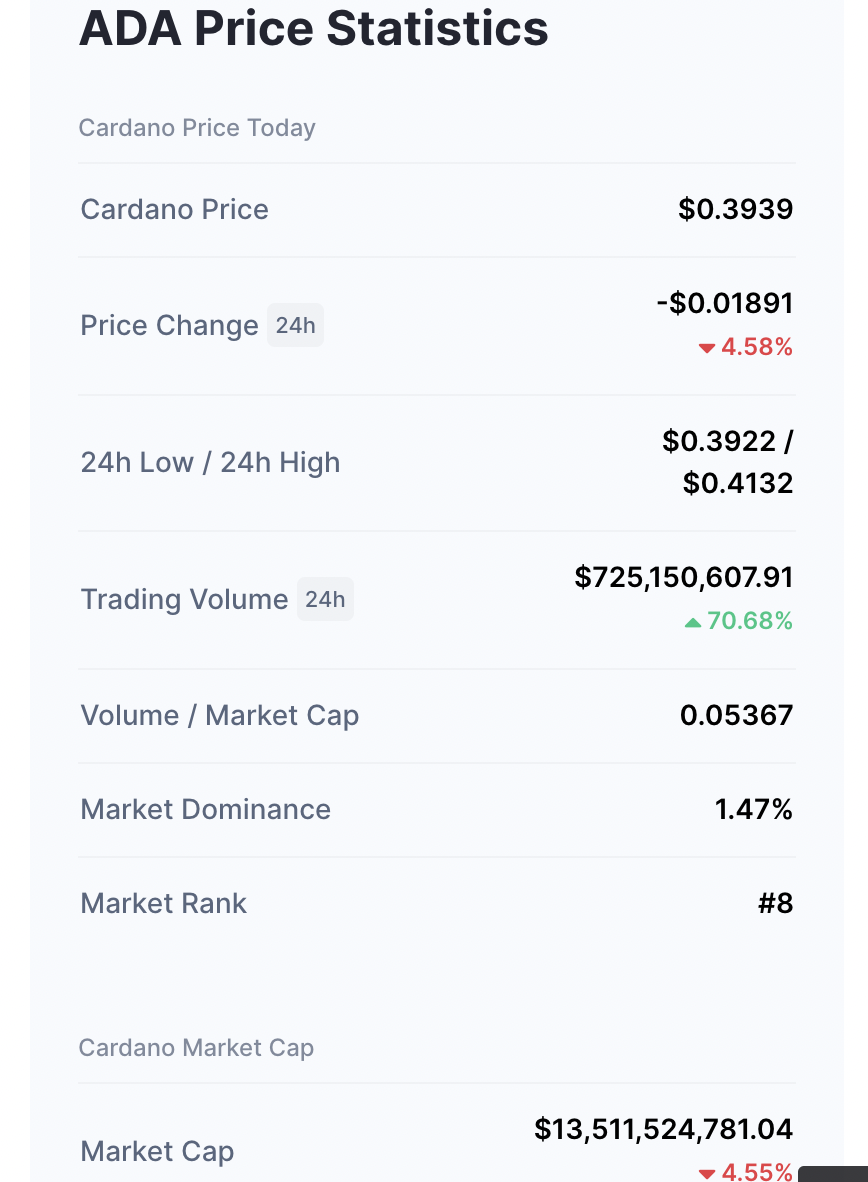 ADA dosáhla své maximální hodnoty v roce 2021 a její tržní kapitalizace byla více než 90 miliard dolarů. Byla výrazně větší než tržní kapitalizace některých tehdejších největších světových společností.