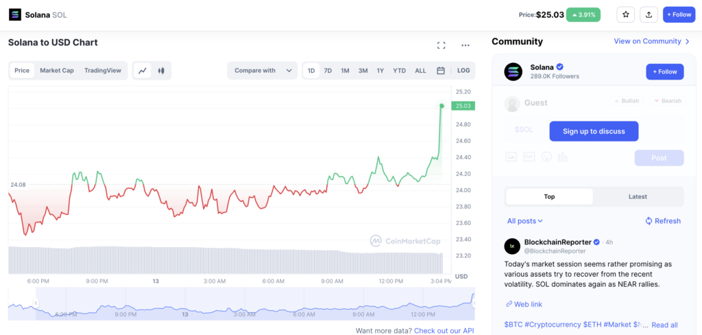 According to data from CoinMarketCap, there were about 378 million SOLs in circulation at the time, with a total supply of about 539 million. The coin thus had a market capitalization of around $9.5 billion, placing it 11th among cryptocurrencies in this category.