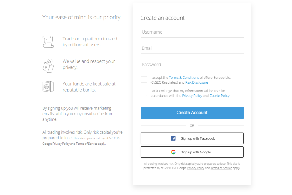 Etoro oferuje dwa rodzaje kont: konto demo i konto rzeczywiste. W obu przypadkach, aby móc korzystać z konta, należy zarejestrować się w eToro i jest ono dostępne zarówno dla osób fizycznych, jak i prawnych. Etoro oferuje prosty i szybki proces otwierania konta. Dane osobowe i kontaktowe wprowadzasz na oficjalnej stronie internetowej. Poproszą Cię o dokument tożsamości oraz dowód zamieszkania, czyli kopię rachunku bankowego lub rachunek za media z ostatnich 6 miesięcy. Następuje łatwy „test przydatności”, podczas którego zostanie określona Twoja podstawowa wiedza finansowa i będziesz gotowy do zarejestrowania konta.