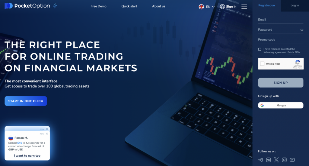 Pocket Option ističe se u svijetu trgovanja svojim niskim ulaznim pragom, koji omogućuje trgovcima da započnu s početnim depozitom od 5 USD. Njihova jedinstvena, vlasnička platforma za trgovanje osigurava stabilno iskustvo trgovanja, služeći se raznim instrumentima za trgovanje, uključujući valutne parove, robe i kriptovalute. Osim toga, značajka platforme za društveno trgovanje nudi put za stvaranje pasivnog prihoda, a dostupnost demo računa omogućuje novopridošlima da vježbaju bez financijskog rizika. Uz visoku ocjenu zadovoljstva korisnika od 8,74 od 10, očito je da mnogi trgovci nalaze vrijednost u onome što Pocket Option nudi.