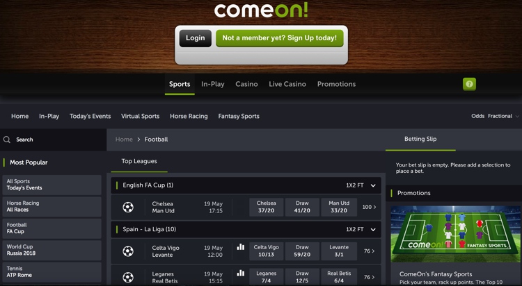 ComeOn, renomovaný prevádzkovateľ športových stávok, ponúka bezpečnú platformu na stávkovanie o skutočné peniaze v Kanade. Je držiteľom platnej licencie MGA a legálne pôsobí na regulovaných trhoch.